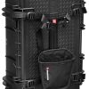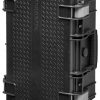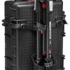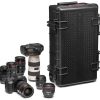 В кофр помещается профессиональная DSLR-камера с установленным объективом 70-200 мм f2.8, второй камерой и 4-5 дополнительными объективами. IP67 тесты подтверждены: пыль не проникает внутрь, временное погружение в воду на 30 минут.