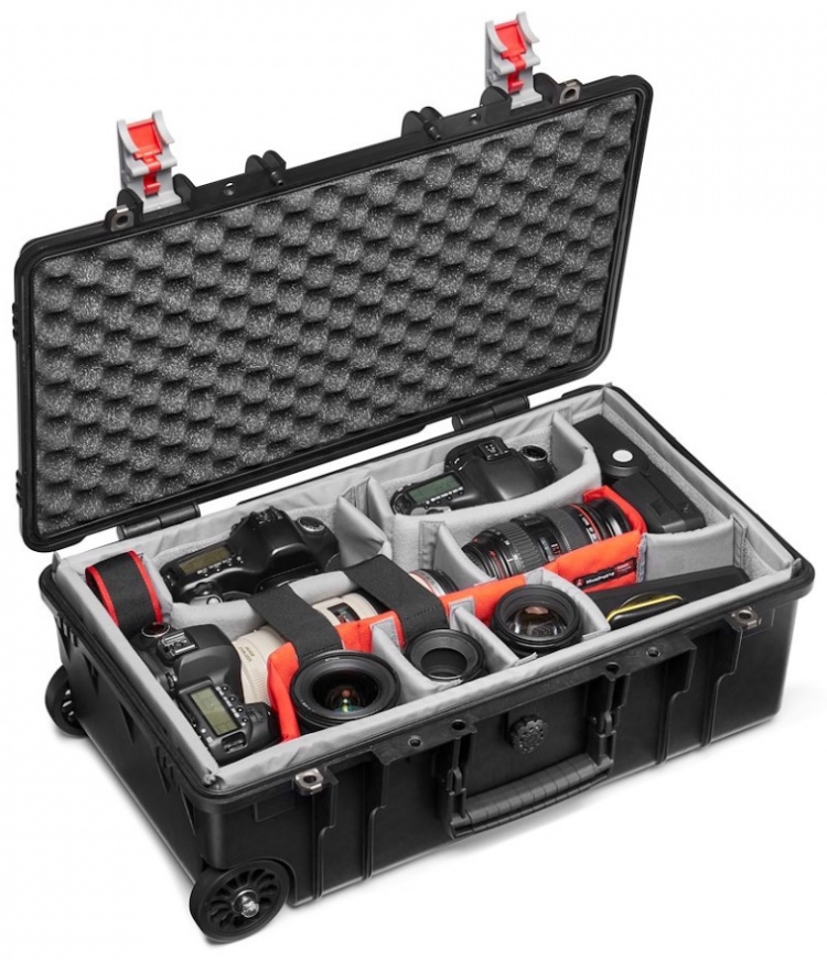 Кофр на колесах Pro Light Reloader Tough L-55 для DSLR-камер и премиум CSC-камер предназначен для профессиональных путешествующих фотографов и видеооператоров. Этот кофр изготовлен в оригинальном дизайне Manfrotto в Италии из сверхпрочных легких материалов, основанных на военном стандарте. Разработанный для путешественников, которые не хотят икать компромисс между безопасностью и портативностью, этот кофр соответствует международным стандартам размеров ручной клади* и оснащен 2-ступенчатой выдвижной ручкой для транспортировки. Новый Pro Light Reloader Tough L-55 имеет внутренний съемный кофр для организации пространства, который можно настроить с помощью регулируемых разделителей Manfrotto CPS (Camera Protective System).