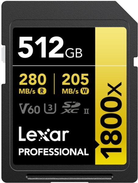 Карта памяти Lexar Professional 1800x SDXC UHS-II V60 512 ГБ (LSD1800512G-BNNNG) из серии GOLD — это высокопроизводительное решение для профессиональных фотографов и видеографов, которым необходима надёжность и скорость при работе с большими объёмами данных.