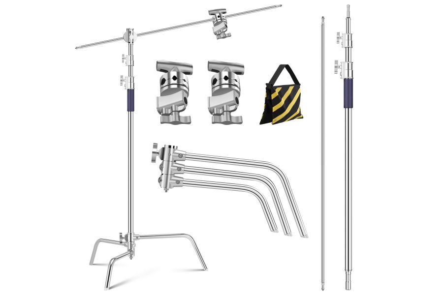 Стойка-журавль K&F Concept KF34.037 C-stand Прочная и долговечная стойка из нержавеющей стали с грузоподъемностью до 20 кг идеально подходит для профессионального фото- и видеооборудования. Регулируемая высота (149–330 см) и встроенная амортизационная пружина обеспечивают безопасность техники. Широкая совместимость: резьбы 1/4″ и 3/8″, C-образная база с антискользящей вставкой и возможностью утяжеления. Компактная конструкция удобна для хранения и перевозки. Комплектация: стойка, ноги, журавль (126 см), грип (2 шт.), груз.