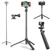 - Максимальная высота достигает 157,8 см, и поддерживается 7-секционная регулировка ножек. Вы можете отрегулировать необходимую высоту по своему усмотрению. Штативная головка выдерживает нагрузку до 3 кг и подходит для большинства беззеркальных камер, мобильных телефонов и другого оборудования.