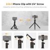Держатель для телефона подходит для устройств шириной от 2,2″ до 3,7″, включая iPhone, Samsung и Huawei. Штатив оснащен винтом 1/4′ и адаптером GoPro, совместим с камерами и GoPro, выдерживает вес до 2 кг. Беспроводной пульт дистанционного управления работает с Android и iOS.